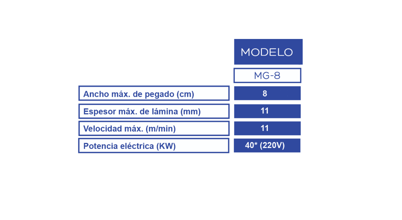 Marca MARVI INTERNACIONAL®. Aplicador manual de pegamento en ceja de caja de cartón corrugado. Rodillo aplicador con dosificador ajustable, el cual ayuda controlar el consumo de pegamento. La engomadora MG-8, es muy fácil de operar: Cuenta con un solo interruptor (ON/ OFF), la velocidad es fija, y permite ajustar el ancho de ceja y el espesor del corrugado. Se recomienda utilizar pegamento PVA (Acetato de Polivinilo). |