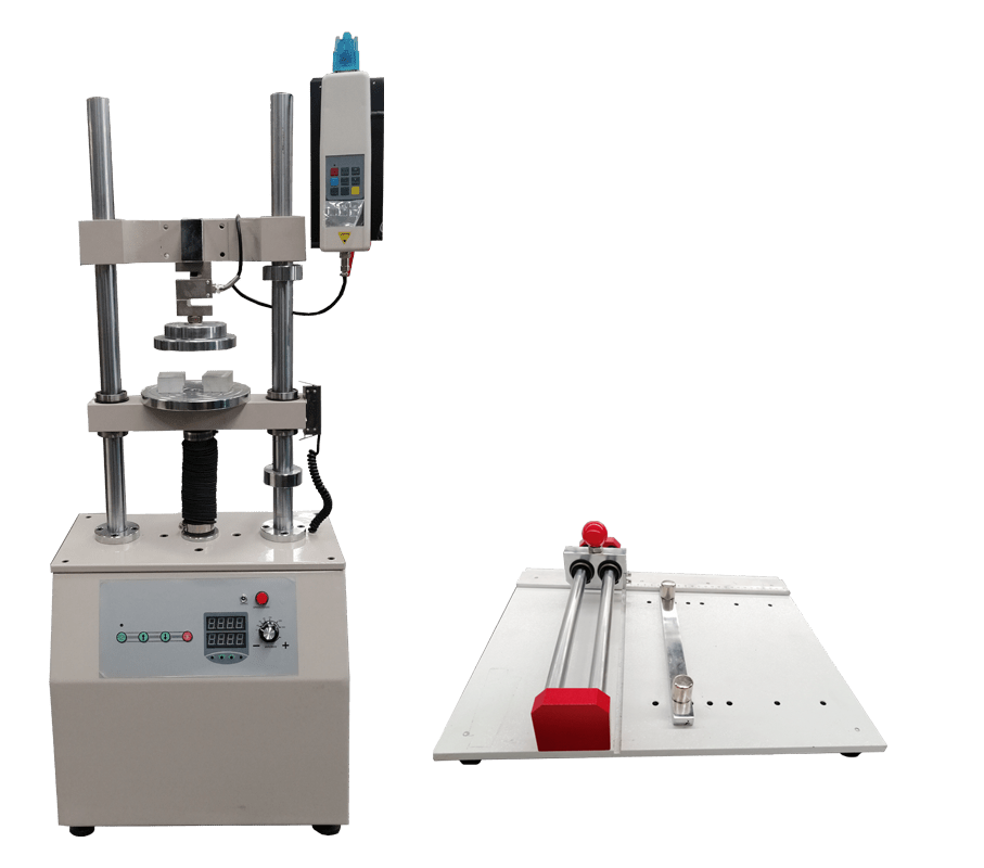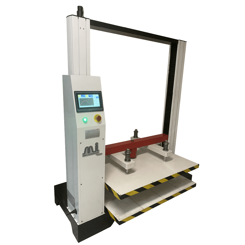 Equipo para realizar pruebas de ECT (Edge Crush Test) en cartón corrugado. Acompañado por un dinamómetro. |