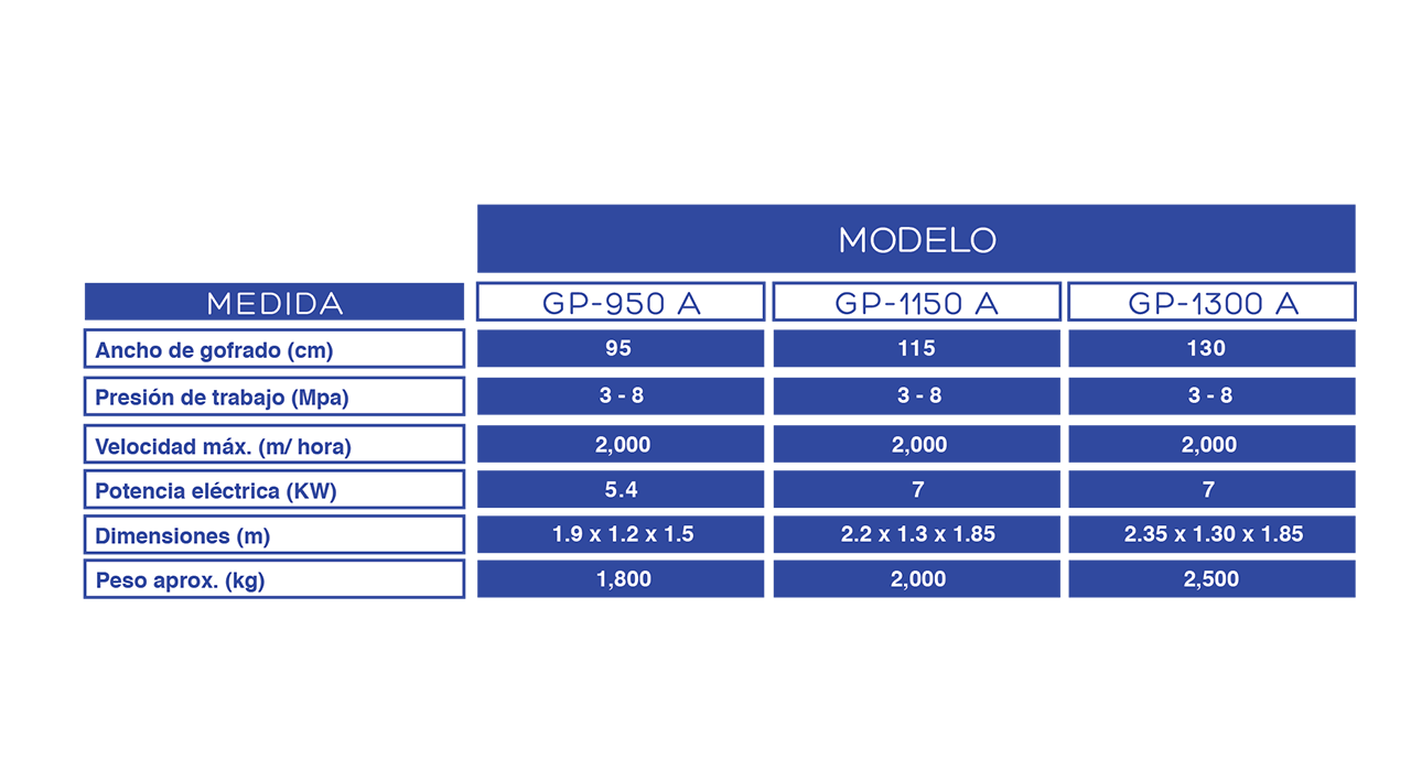 Marca MARVI INTERNACIONAL®. Máquina gofradora para papel y cartulina de alimentación manual. Realza con textura el material. Presión del rodillo contra de sistema hidráulico, fácil operación, variación de velocidad por medio de inversor de frecuencia. Varios diseños de gofrado disponibles. |