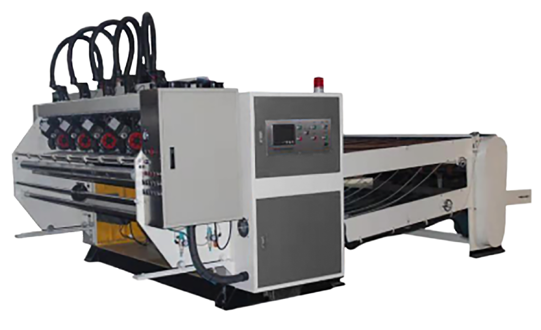 Marca MARVI INTERNACIONAL®. Máquina para hojear cartón corrugado de dos papeles (cara sencilla), corte sencillo giratorio, cuchillas de acero de alta resistencia, contador, salida de banda, salida con opción a los dos lados para doble hoja, sistema de refilado longitudinal con tres pares de cuchillas de disco, velocidad variable. Cuenta con software para la programación de las medidas de corte longitudinal de la producción programada. |