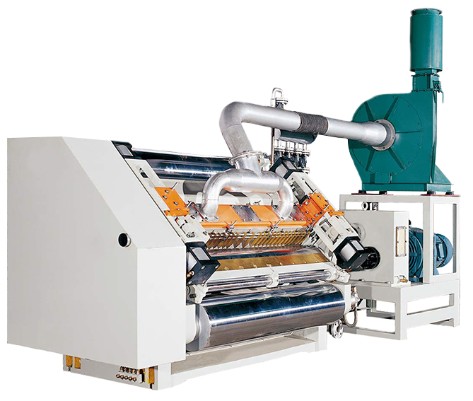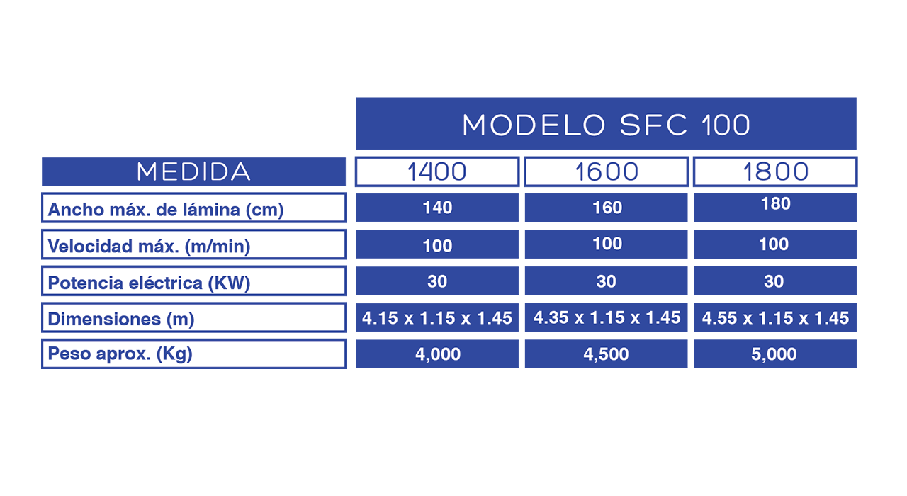 Marca MARVI INTERNACIONAL®. Cabezote corrugador para flautas “E”, “B” y “C”. Presiones de rodillos controladas por sistema neumático, sistema “finger less” (succión por medio de vacío). Sistema de rodillos aplicadores de pegamento con sistema de cassete, y con ajuste lateral de topes de pegamento motorizado. Sistema de regadera de vapor. Inversor de frecuencia para control de velocidad. |