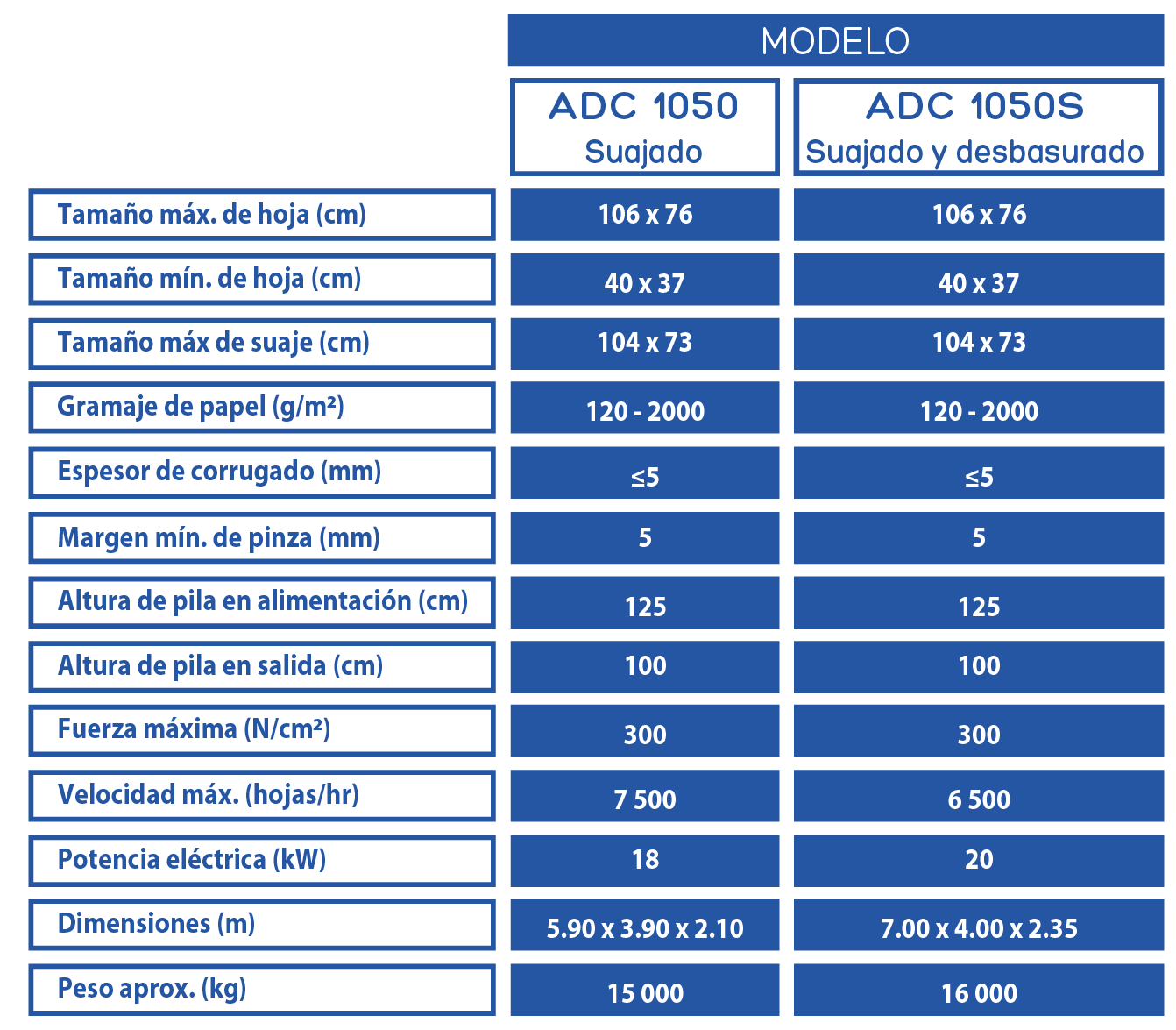 Marca MARVI INTERNACIONAL®. Máquina para suajar cartón corrugado u otros materiales. Programador de tiempo de paro en cada lado y avance de bandas. Ajuste y mantenimiento muy sencillo. Utiliza suaje tipo plano (de bajo costo). Velocidad de avance de bandas variable por medio de inversor de frecuencia. |